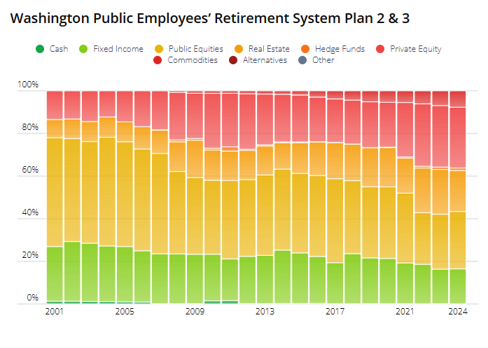 Washington’s recent changes used these exact plays. The legislature increased the ARR from 7.0% to 7.25%. This seems minor, but it allowed the state to erase over $5.4 billion in liabilities overnight. I have been unable to find anything that changed in the state’s investment strategy to justify this move. By assuming higher returns, the state is choosing to contribute less today, betting that future taxpayers and workers will cover the gap when the market falls short. When combined with the increasingly riskier assets the pension funds are investing in, it creates a very uncertain future.
