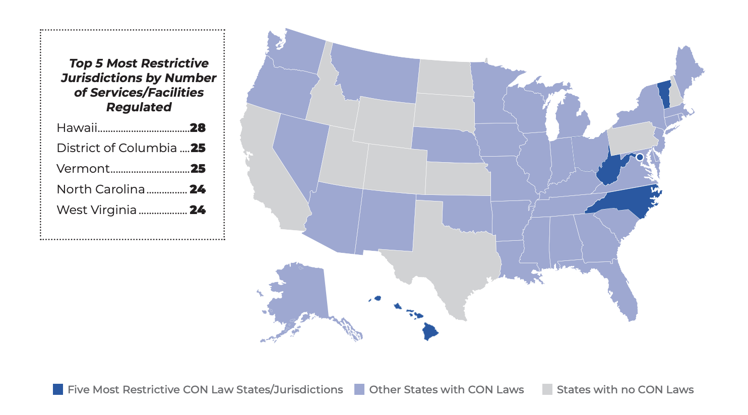 Jurisdictions With the Most Restrictive Certificate-of-Need Laws