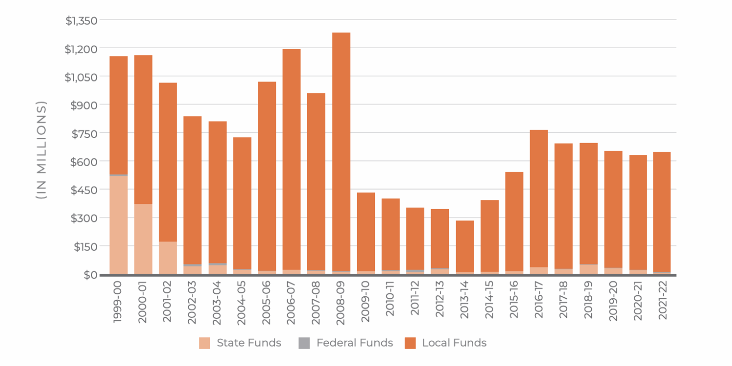 • Since 2000, North Carolina’s local governments have spent over $15.3 billion on school facilities, averaging $668.7 million per year. Locally funded capital expenditures represented 90.6% of all public-school capital spending in the state.