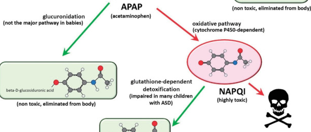 Some experts argue that neurological damage occurs due to a toxic byproduct of acetaminophen called NAPQI. Babies and children with autism may struggle to metabolize the drug, resulting in higher levels of NAPQI, which kills cells.