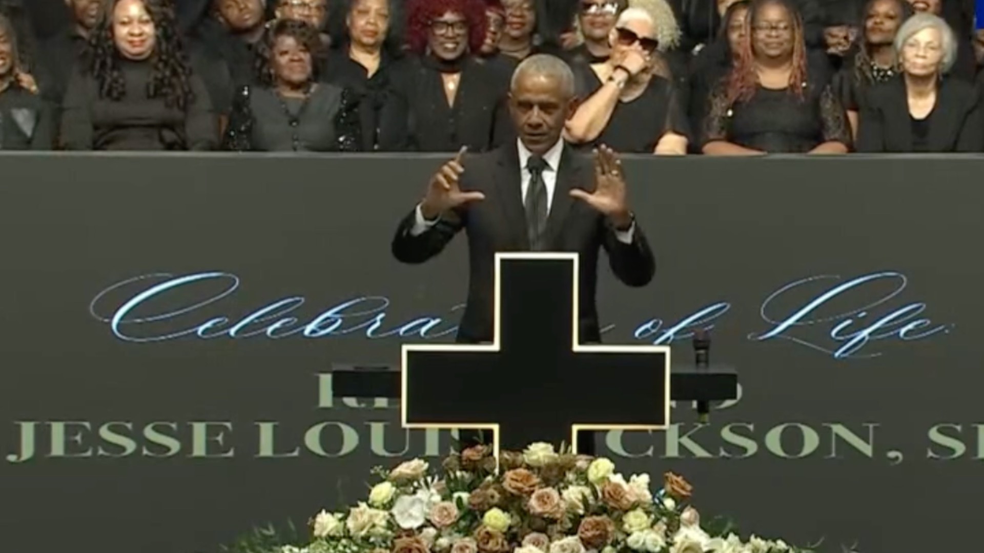 President Trump didn’t attend the star-studded memorial service for the Rev. Jesse Jackson but he was at the top of mind for many of its speakers.
