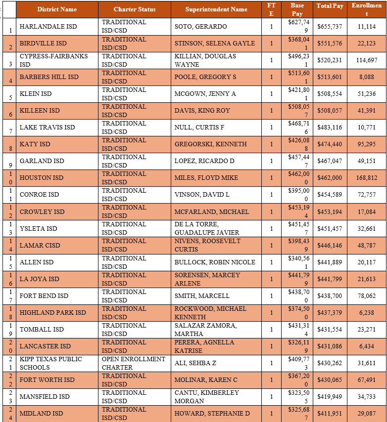 Top 25 Highest Paid Superintendents in TexasSorted By Total Pay