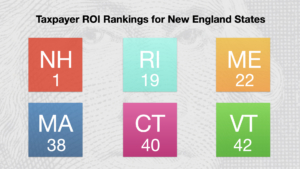 Of the other New England states, only Rhode Island (19th) ranks in the top half of states on taxpayer ROI.