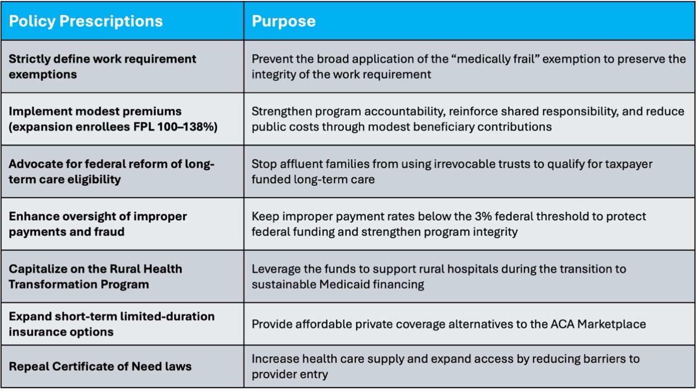 However, if policymakers choose to maintain Medicaid expansion, the following, more targeted reforms should be implemented without delay: