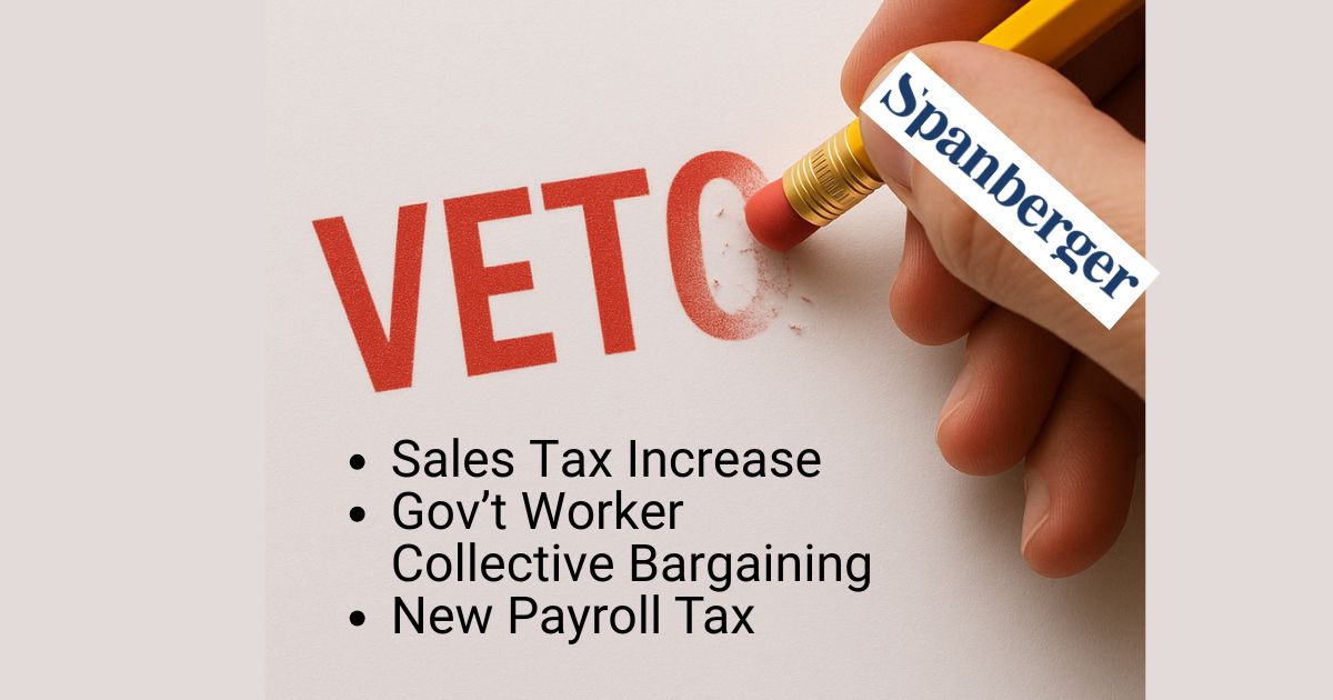 Bipartisan votes in the General Assembly authorized local governments to increase the sales tax by 1 percentage point within their jurisdictions, ostensibly to fund schools, but tax dollars are very fungible. Again, only a Youngkin veto stopped this local tax increase, and we should expect another effort in 2026.