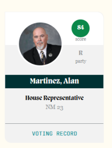 Rep. Alan Martinez of Albuquerque had the highest overall score and the highest score in the House at 84