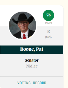 Sens. Pat Boone, Candy Ezzell, and Larry Scott had the highest scores in the Senate. They were tied at 76