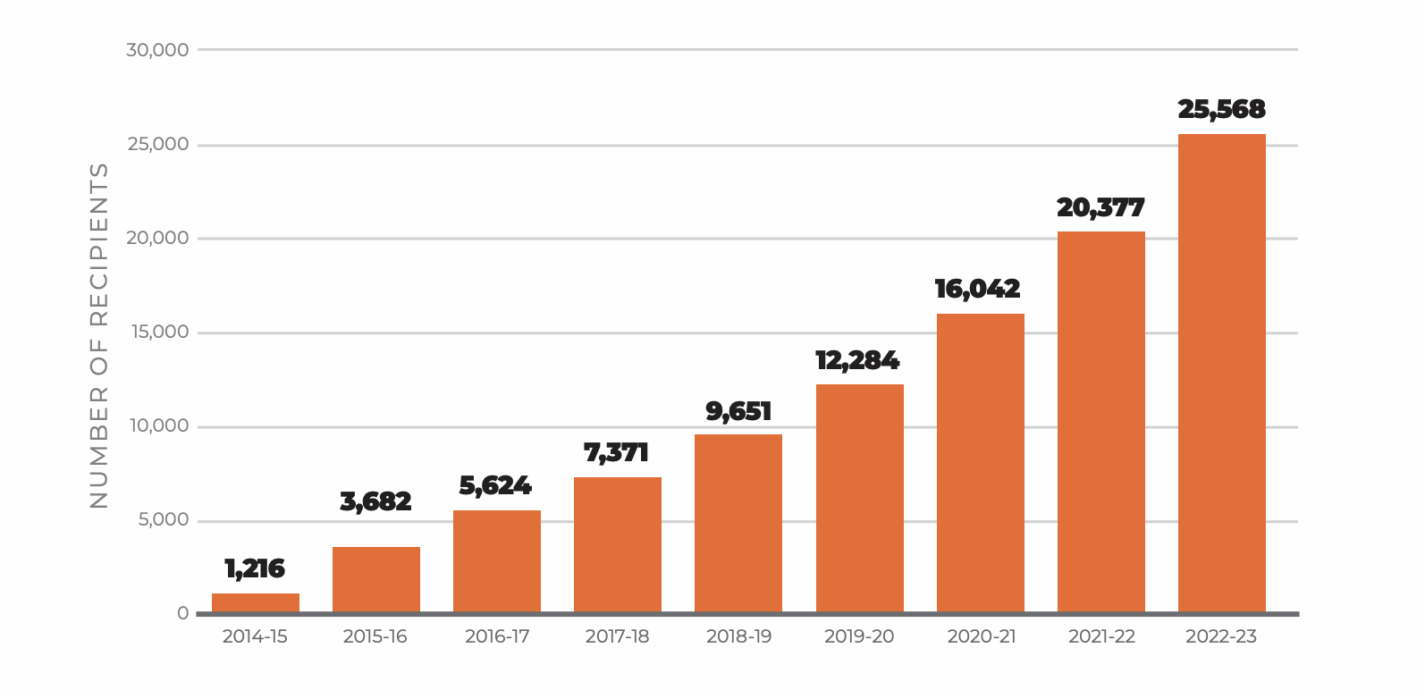 • In 2013, North Carolina lawmakers approved the Opportunity Scholarship Program. The program helps eligible students attend private schools by providing state vouchers worth up to 100% of the average amount the state spent per public-school student during the prior fiscal year. During the 2022-23 school year, the Opportunity Scholarship Program enrolled over 25,500 students and awarded over $134.6 million in scholarships.