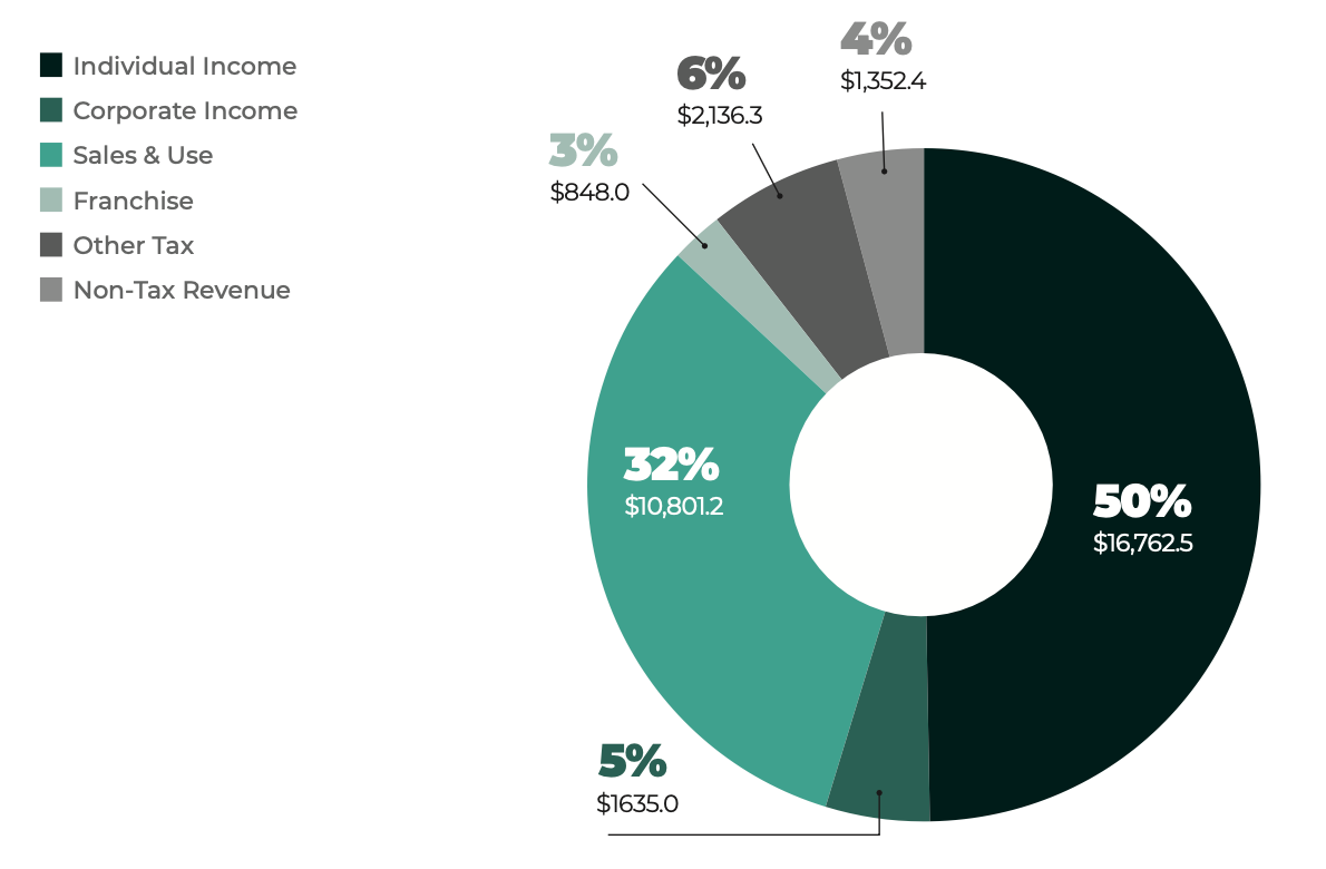 A close look at recent numbers shows that education, Medicaid, and public safety received 88 percent of the $27.9 billion in Fiscal Year (FY) 2022-23 General Fund appropriations, including debt service. Taxes on personal income and sales provided 83 percent of the $33.5 billion in FY 2022-23 General Fund revenues.