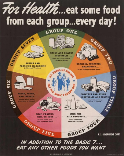 The new pyramid now hews more closely to nation’s first recommended daily dietary allowances in 1943, which recommended a balanced diet of whole foods.